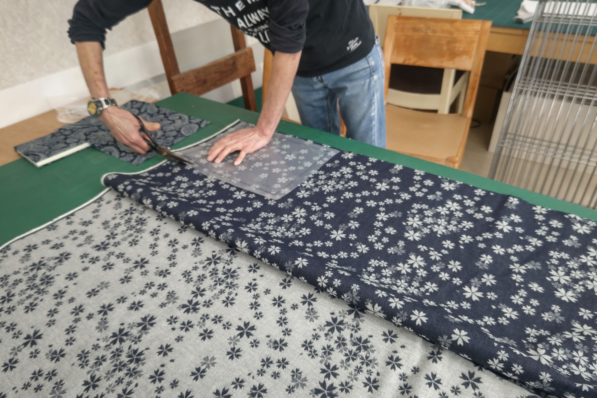 東京にあるPAPER MAGIC様の工場で一つ一つ職人さんが丁寧に生地を貼って下さっています。