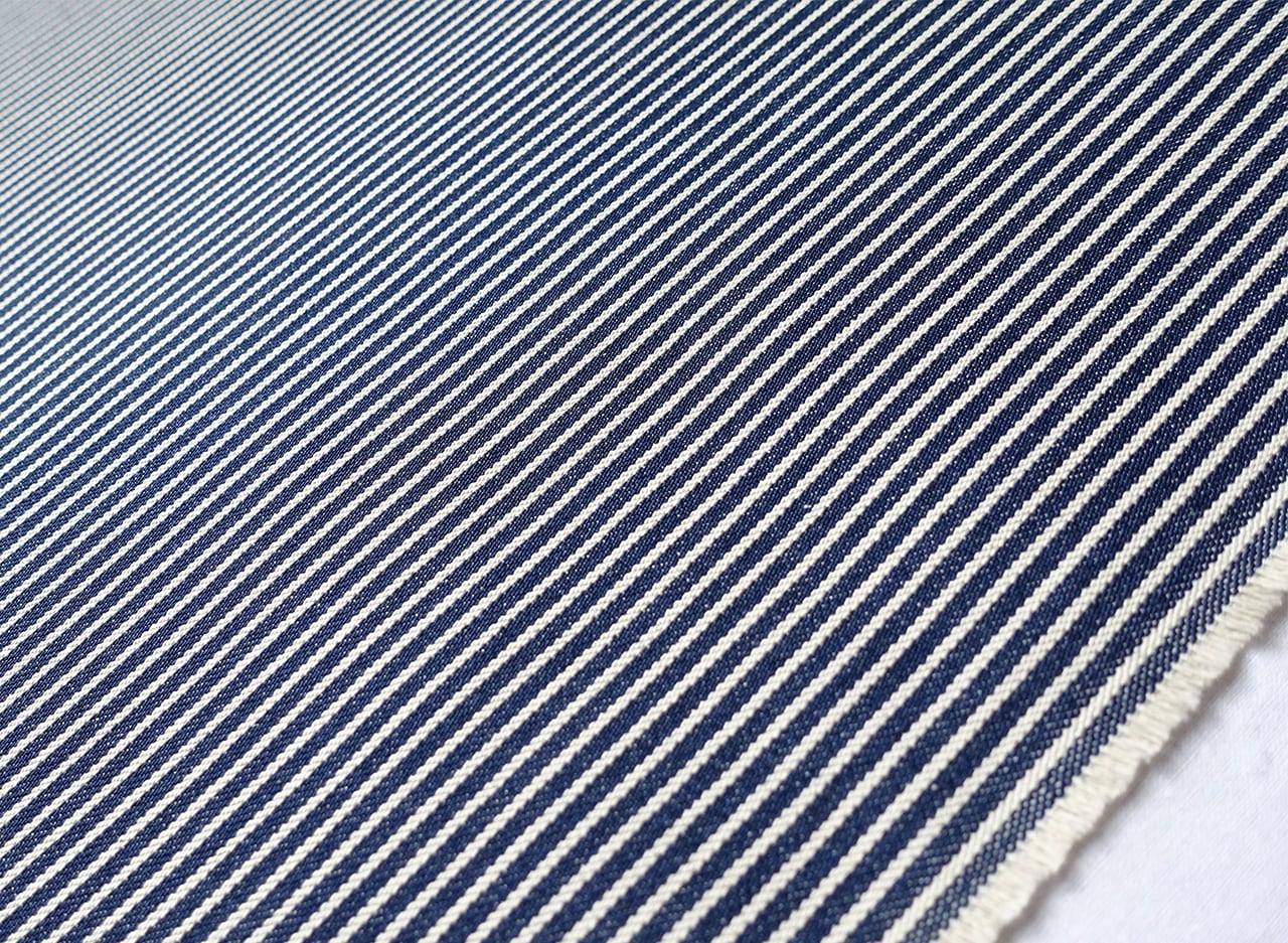 インディゴのベースに白いラインが入った、10ozのヒッコリーデニムです。